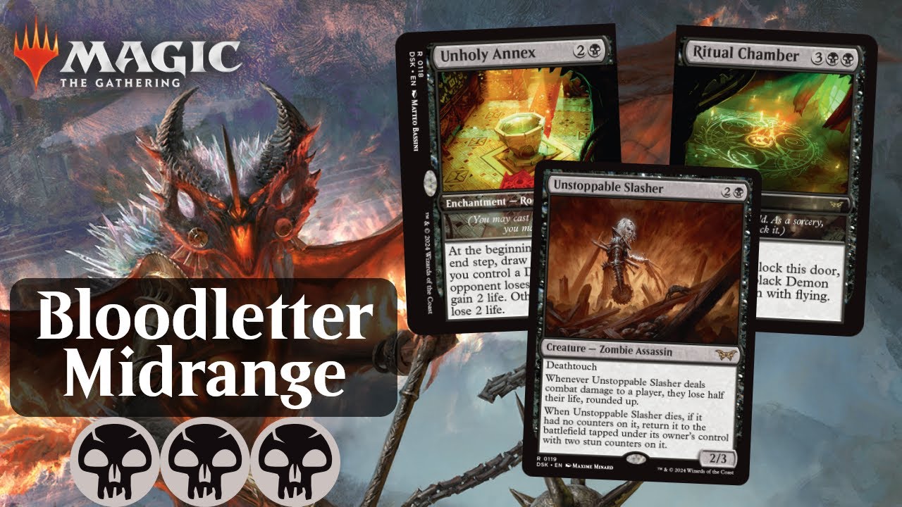 Bloodletter of Aclazotz just got two new best friends in Duckmourn! Unstoppable Slasher gives you a two card lethal combo, while Unholy Annex is an awesome card advantage engine turned win condition.